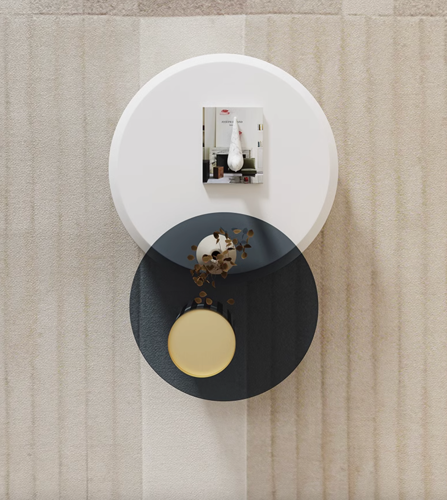 | Introducing the Calloway Nesting Coffee Table, a fusion of functionality and style. This set features round nesting tables in varying sizes and colors that slide together effortlessly. Each round nesting coffee table boasts a sleek design, ideal for space-saving and adding a modern touch to any room. |