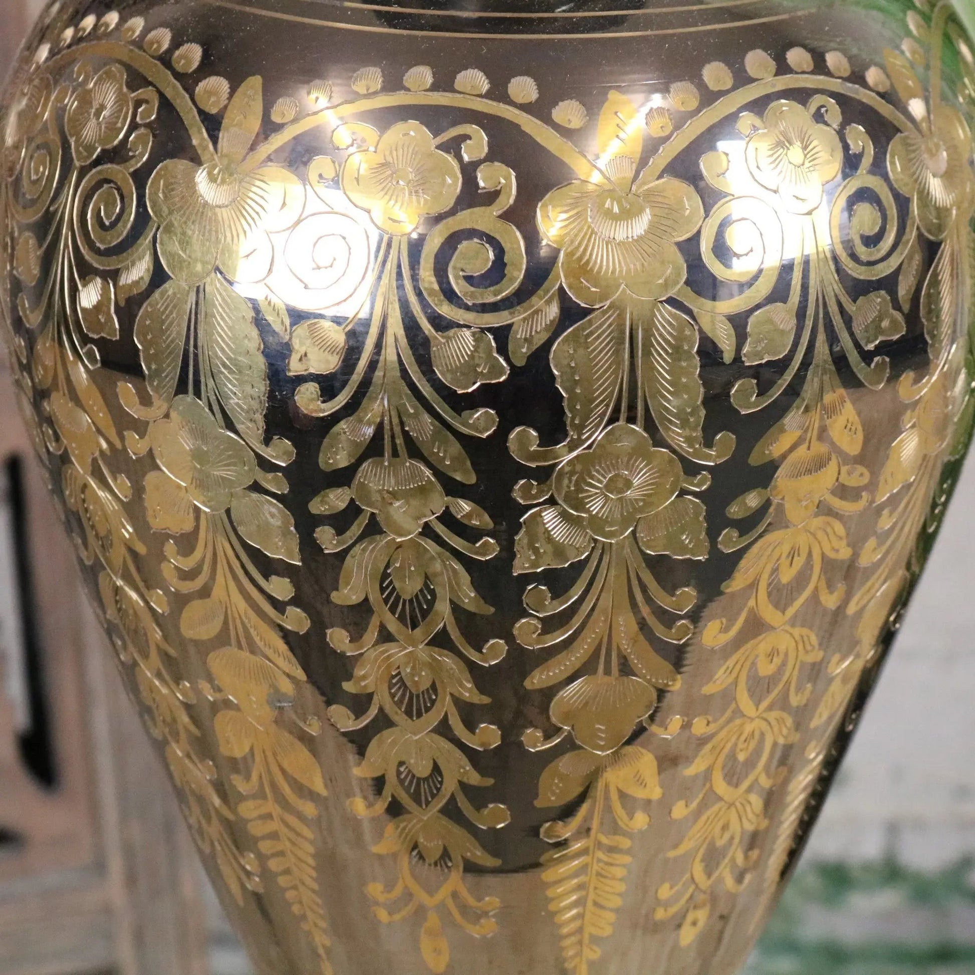Vintage 90cm Large Brass Vase Hand Etched - Silver and Gold Polished